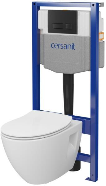 Cersanit Mille, System50 MECH süllyesztett keret + Mille Plus CleanOn fali WC csésze + fekete MOVI II gomb, S701-756 (S701-756)