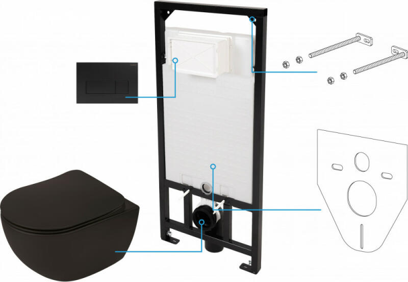 Deante Peonia Zero 6 az 1-ben WC csésze, rejtett szerelvénnyel, nyomólappal, ülőkével, matt fekete CDENNZPW Tartály