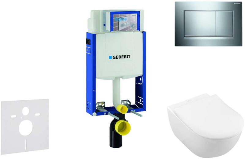 Geberit Kombifix - WC modul nyomógombbal Sigma20, fényes króm/matt króm + Villeroy Boch - WC és ülőkéje, DirectFlush, SoftClose, CeramicPlus 110.302. 00.5 NI6 (110.302.00.5 NI6)
