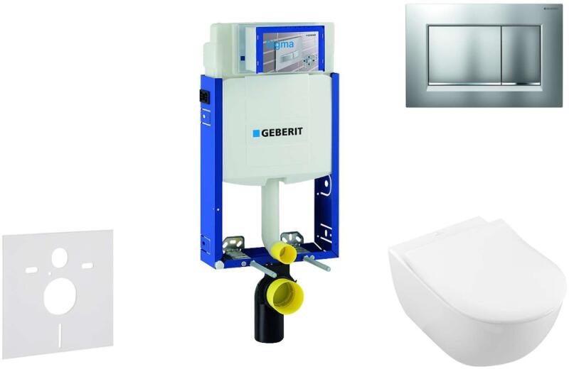 Geberit Kombifix - WC modul nyomógombbal Sigma30, matt króm/króm + Villeroy Boch - WC és ülőkéje, DirectFlush, SoftClose, CeramicPlus 110.302. 00.5 NI7 (110.302.00.5 NI7)