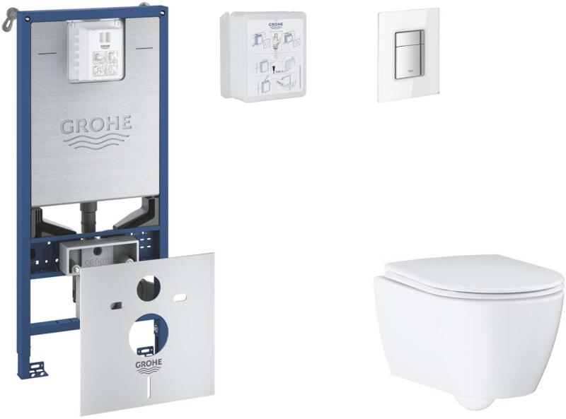 GROHE Rapid SLX - Készlet fali beépítéshez, WC, SoftClose ülőkével és Skate Cosmopolitan gombbal, Moon White SANI11BB3115 (SANI11BB3115)