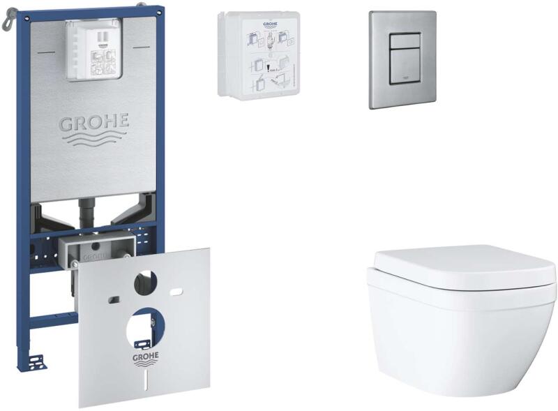 GROHE Rapid SLX - Készlet fali beépítéshez, WC, SoftClose ülőkével és Skate Cosmopolitan gombbal, Triple Vortex, csiszolt nemes acél SANI11BB2106 (SANI11BB2106)