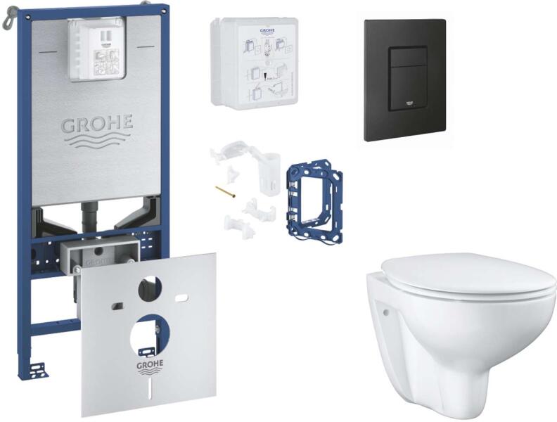 GROHE Rapid SLX - Készlet fali beépítéshez, WC ülőke, SoftClose ülőke, Even gomb és bedobható tabletta készlet, phantom fekete SANI11BB5125 (SANI11BB5125)