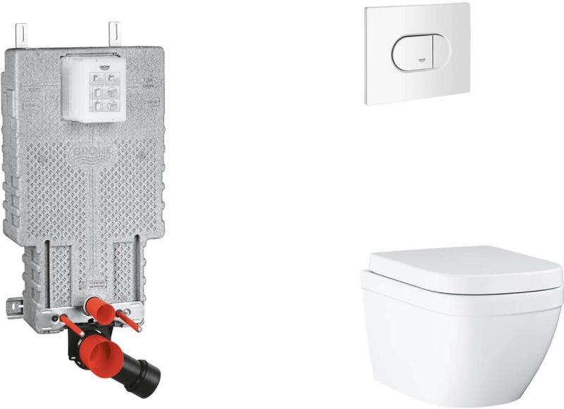GROHE Uniset - Készlet fali beépítéshez, WC, SoftClose ülőkével és Arena Cosmopolitan gombbal, Triple Vortex, alpesi fehér SANI15BB3108 (SANI15BB3108)