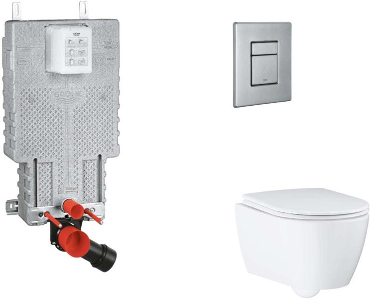 GROHE Uniset - Készlet fali beépítéshez, WC, SoftClose ülőkével és Skate Cosmopolitan gombbal, csiszolt rozsdamentes acél SANI15BB2112 (SANI15BB2112)