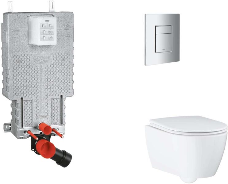 GROHE Uniset - Készlet fali beépítéshez, WC, SoftClose ülőkével és Skate Cosmopolitan gombbal, króm SANI15BB2110 (SANI15BB2110)