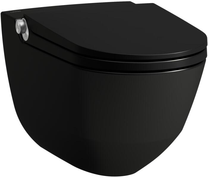 Laufen Cleanet Riva akciós csomag bidéfunkciós rimless fali, mélyöblítéses wc FEKETE MATT + falba építhető wc tartály H8946660000001 + MATT FEKETE működtető nyomólap H8956617160001 -ingyenes üzembe helyezés és oktatás -ingyenes szénszűrő és vízkőtelenítő készlet -Fekete matt 716 wc -rejtett rögzítéssel -a zuhanyfej, az elektronika és a vízmelegítő a kerámiatestben van elrejtve -ülőkébe épített nyomásérzékelővel (a rendszer kikapcsol ha felállunk) -hálózati feszültség 220-240 V, 50-60 Hz -falba épített öblítőtartályhoz -6/3  liter vízöblítéssel -Duroplastból készült levehető, lecsapódásgátló mechanizmussal szerelt rejtett rögzítésű ülőkével együtt -wc ülőkébe épített, a zuhany funkciókat szabályozó forgógombos kontrollerrel -érintőképernyős távvezérlő fali tartóval -ülep és hölgyzuhany funkció -oszcilláló fej (a fej előre-hátra mozog) és pulzáló vízsugár funkció -a zuhanyfej önműködő tisztítása használat előtt és után (a fej könnyen cserélhető) -beépített vízkőmentesítő funkció,  az ülőke alatt utántölthető -négy programozható felhasználói profil -a vízsugár erőssége, a víz hőmérséklete és a zuhanyfej pozíciója 7 fokozatban állítható, 5,6 liter/perc (hölgyzuhany esetén 2,5 liter/perc) vízfelhasználással -önműködő szagelszívás aktív szén szűrővel, a szűrő az ülőke alatt cserélhető -éjszakai jelzőfény négy fényerősségi fokozattal  -piros fény a karbantartási igényt jelzi -a porcelántest alatt a főkapcsoló és a szervízcsatlakozó -a távirányítóval beindítható magas hőmérsékletű tisztító funkció 70 fokos vízzel (30 perc) -standby beállításban teljesítméy max. 1 W