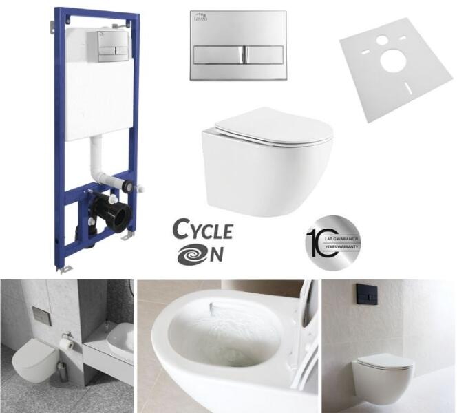 Laveo Laveo, Akan fali rejtett öblítőtartály szett + Desna fali WC-csésze duroplaszt ülőkével, Vortex öblítéssel, fényes fehér, LAV-SETDESNACR (LAV-SETDESNACR)