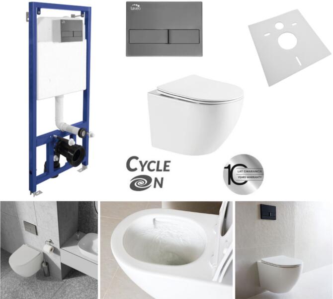 Laveo Laveo, Akan fali rejtett öblítőtartály szett + Desna fali WC-csésze duroplaszt ülőkével, Vortex öblítéssel, fényes fehér, LAV-SETDESNAGR (LAV-SETDESNAGR)