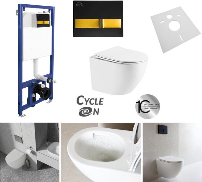 Laveo Laveo, Akan rejtett fali WC-szett + Desna fali WC-csésze duroplaszt ülőkével, Vortex öblítéssel, fényes fehér, LAV-SETDESNAGD (LAV-SETDESNAGD)