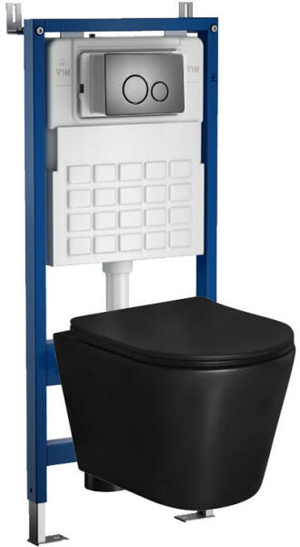 Leziter Roya Milos BLM 81GRE matt fekete perem nélküli fali WC szett, falba építhető wc tartállyal, nyomólappal, wc ülőkével (ROYASET_MILOSBLM_R-081GRE)