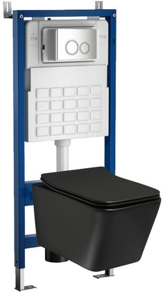Leziter Roya Tinos BLM 82CHR matt fekete perem nélküli fali WC szett, falba építhető wc tartállyal, nyomólappal, wc ülőkével (ROYASET_TINOSBLM_R-082CHR)